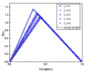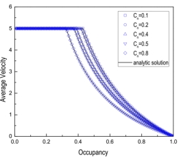 该研究在一维交通流元胞自动机(CA) FI模型的基础上,应用FI模型的规则于次近邻车辆的相互作用,提出了一种确定性的广义FI模型(NIFI模型)。利用平均场分析方法,推导了周期边界条件下一维交通流NIFI模型的解析解。对于混合交通流,引入了占用率和混合比来描述混合效果。利用平均场方法,从混合交通流达到稳态的长时间演化过程推导出其精确解。对不同车长、最大车速和混合比的混合交通流进行了数值模拟,验证了解析解的有效性。结果表明,数值模拟结果与解析解吻合较好。