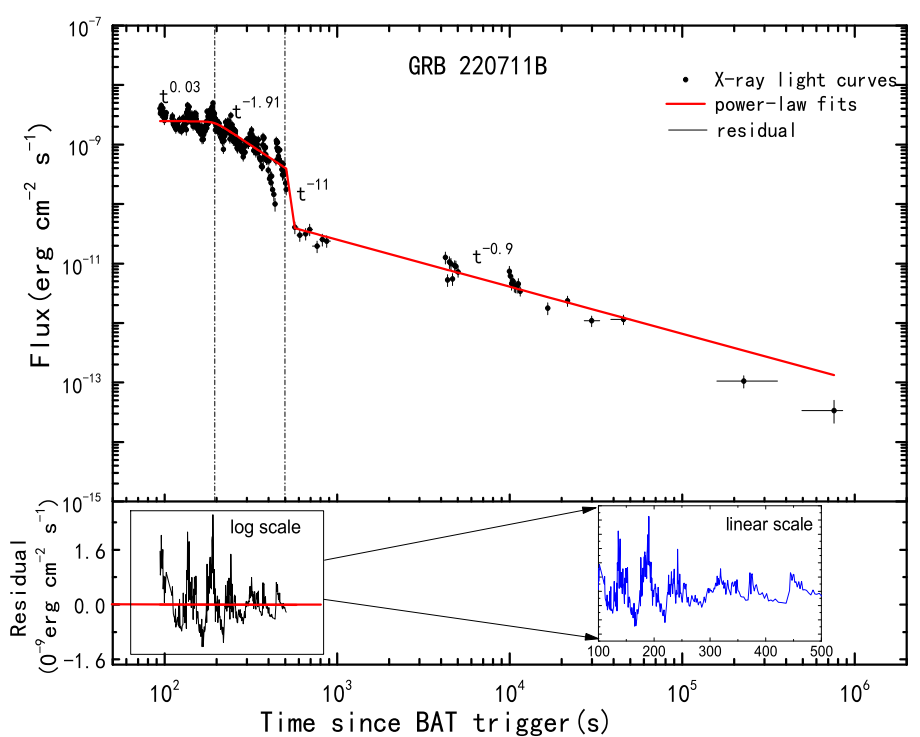 图 2. GRB 220711B的X射线余辉光变以及Power law拟合。