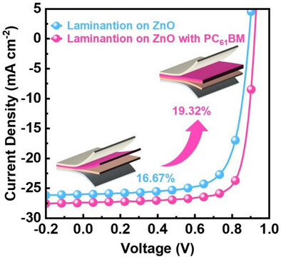 层压薄膜转移已成为一种在有机太阳能电池中制造多层堆叠结构的有前途的技术。然而,有机薄膜转移失败、完整性丧失和电荷转移受限等挑战限制了其更广泛的应用。研究通过富勒烯衍生物对ZnO层的功函数与表面能的调控,显著增强了界面粘附力,优化了活性层内部形貌,从而有效降低了电荷提取的能量势垒。这种改进使得光生电子和空穴能够更高效地被电极收集,最终实现了高达19.32%的光电转换效率,同时提升了器件的稳定性。这项工作为制备高性能有机太阳能电池提供了一种新颖且有效的策略,推动有机光伏向产业化迈进。